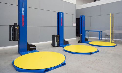 For sites without a forklift, the FROMM FS380L offers an ultra low profile turntable that can easily loaded with a pallet jack. If you are wrapping particularly heavy or irregular sized loads that may not suit a traditional turntable, an entry level robotic solution like the FROMM FR390 can provide greater flexibility, wrapping anywhere in the warehouse and using sensors to detect load sizes.